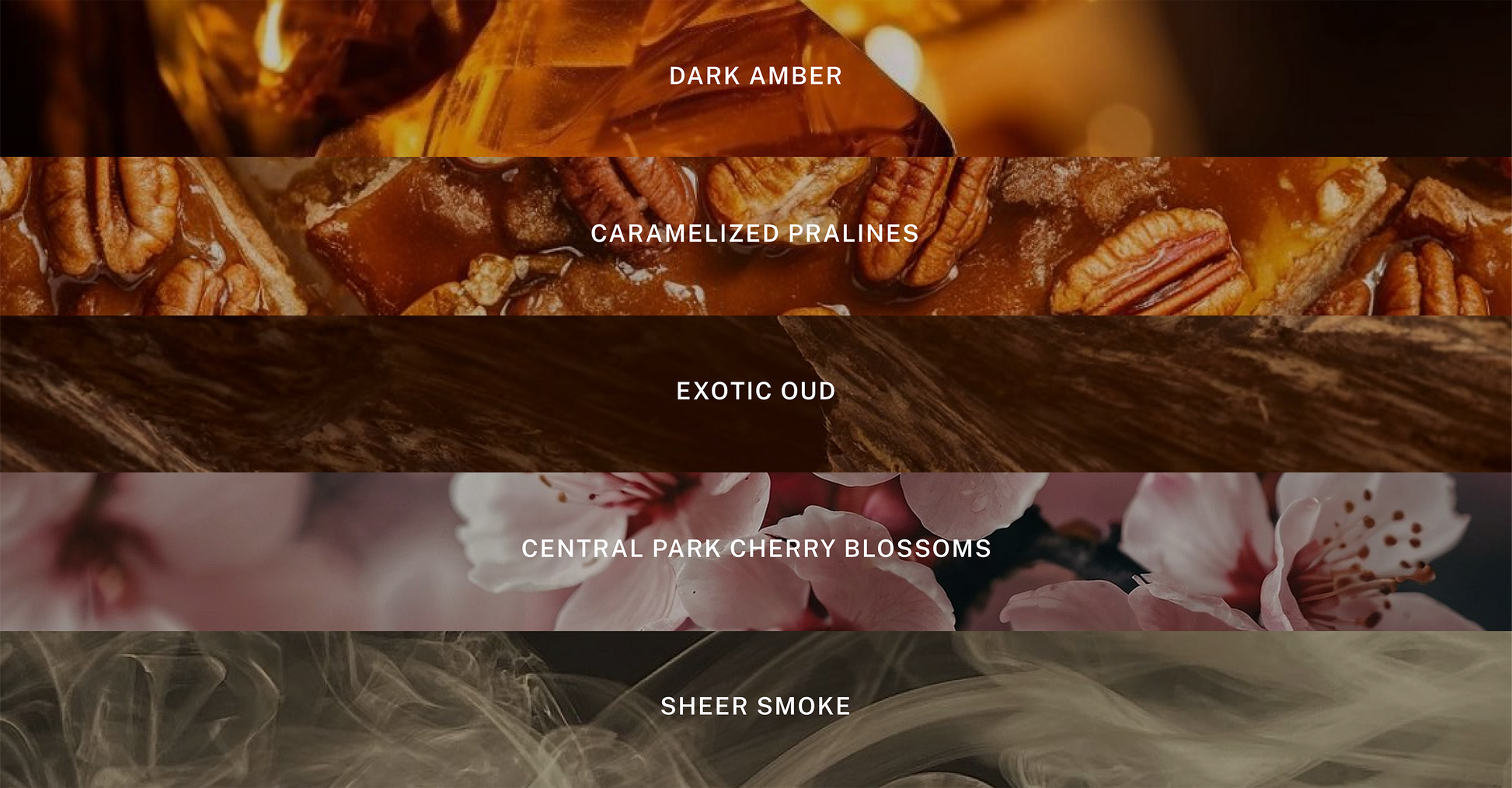 * Notes: Dark Amber, Caramelized Pralines, Exotic Oud, Central Park Cherry Blossoms, Sheer Smoke