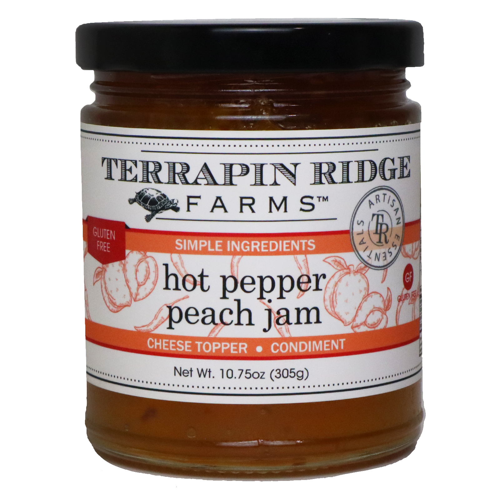 A perfect marriage of juicy peaches and mild heat make our Hot Pepper Peach Jam your go to jam for charcuterie, cheeseboards, and cheese balls. Smear on a crostini with ricotta cheese or on a cracker with goat cheese for a tasty snack. Excellent glaze for pork tenderloin, grilled pork chops and ham. Salmon will never be the same.