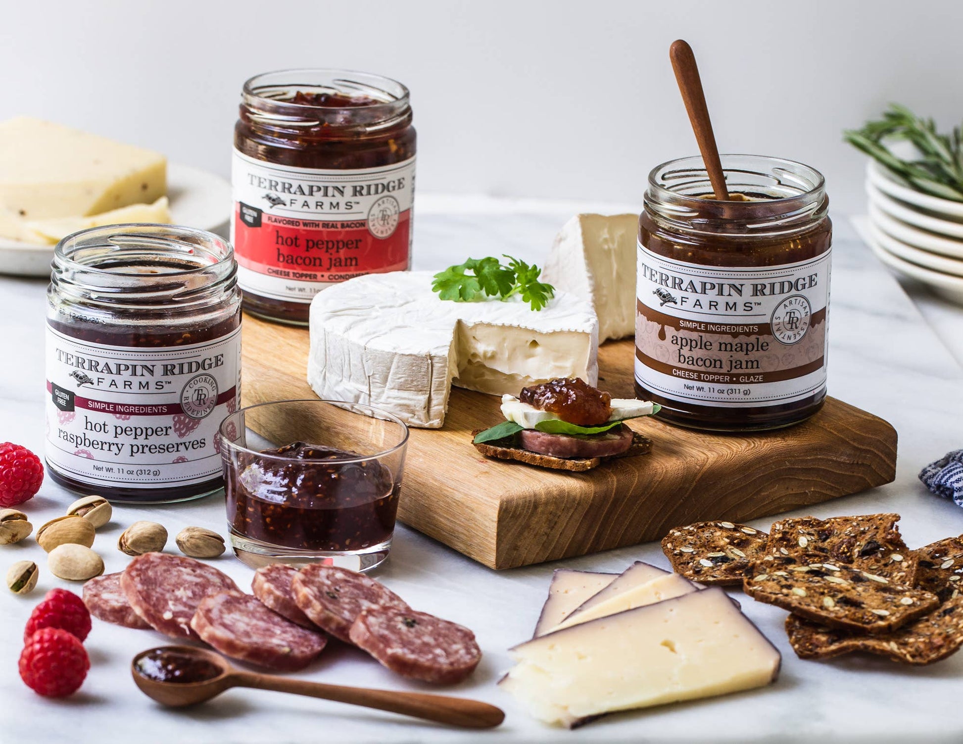 Ripe and juicy red raspberries bursting with flavor are fused with spicy jalapenos giving this sweet-heat jam a sophisticated twist. Mix with cream cheese and enjoy on a bagel or serve with crackers for a quick appetizer. Delectable as a glaze for chicken, pork, and shrimp or as accouterments on your cheeseboard.