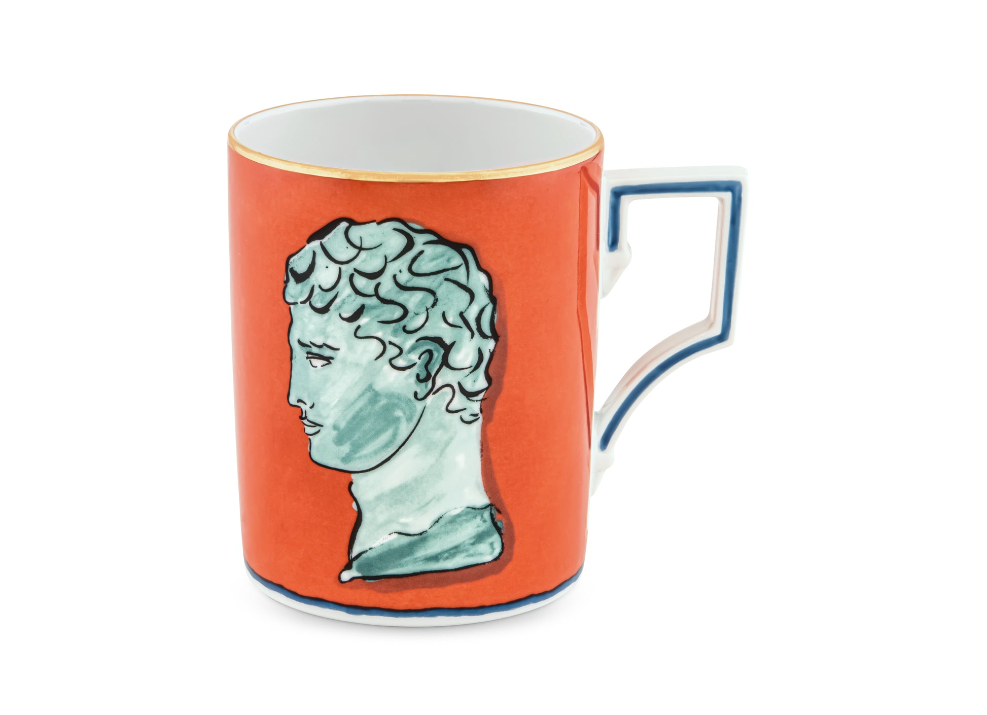 Young artist and designer Luke Edward Hall transposes the standards of antiquity in a modern key by way of an epic and inimitable decoration. An intense coral red frames the likenesses of two of the mythological deities who accompany Neptune on his journey into the deep. Distinctive gold threading illuminates the design and accentuates the contours. Available in an assortment of tableware, tea and coffee services and original home accessories, Il Viaggio di Nettuno is a bold, kaleidoscopic porcelain collection that makes for exquisite gifts in unmistakable Ginori 1735 style.