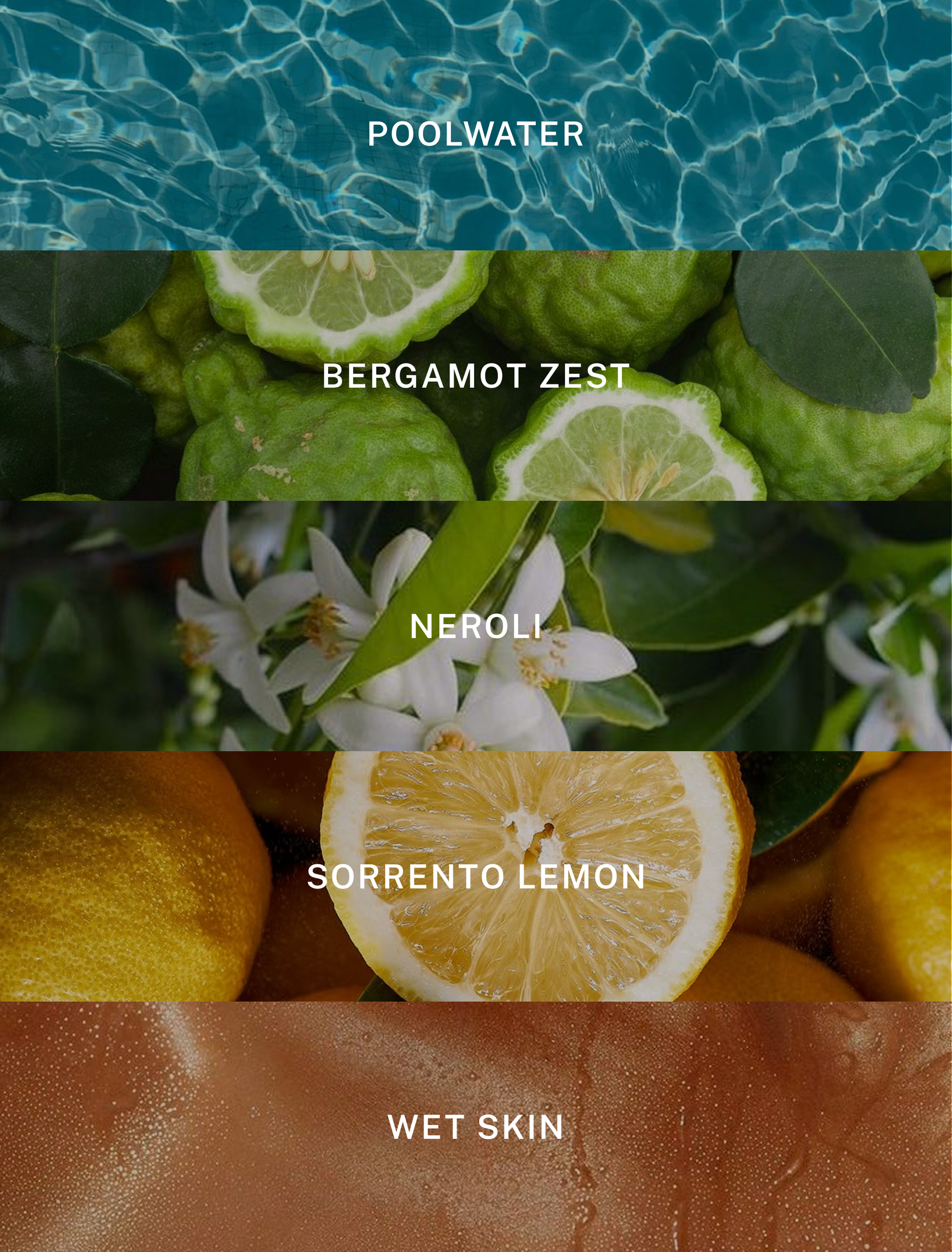 * Notes: Poolwater, bergamot zest, neroli, wet skin, Sorrento lemon