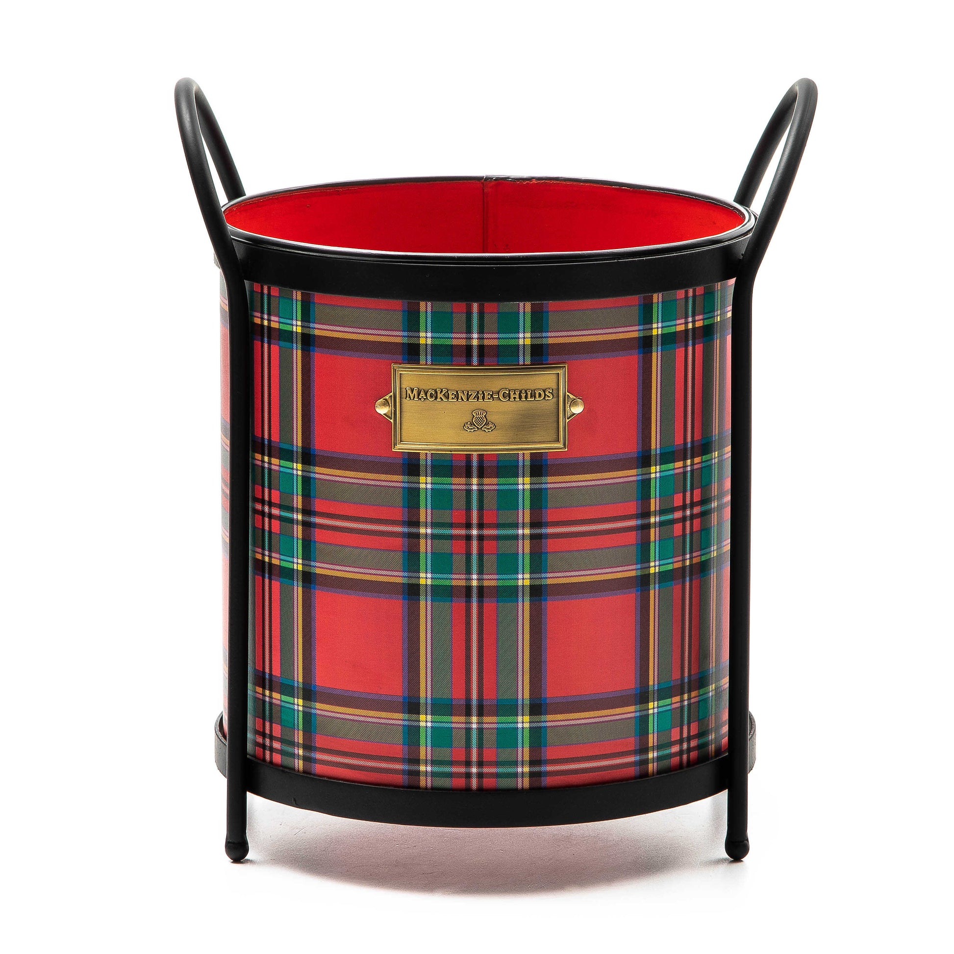 Decorated with decaled red tartan and our distinctive logo plate, this metal kindling container sits in a metal frame and stylishly stores small logs and twigs.